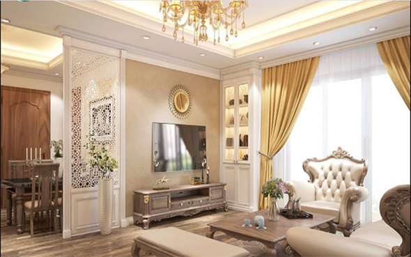 Chắc chắn khi ai từng một lần duy nhất đặt chân đến căn phòng khách này đều để lại những ấn tượng khó phai nhòa bởi sự bề thế, sang trọng của căn phòng khách mái thái này. Với gam màu sáng là chủ yếu, nền trắng tinh khôi đã góp phần làm bật tone màu của những họa tiết, hoa văn khác được thiết kế trong phòng.
