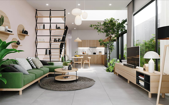• Sử dụng cây xanh làm vật trang trí cho phòng khách